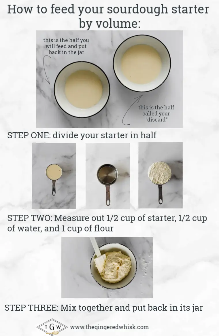 Feeding Sourdough Starter The Gingered Whisk - Like and subscribe if you enjoyed!ingredients:50 grams flour (1/3 cup)50 grams water (1/4 cup)instructions:add 50 grams (1/4 cup) of water and 50 grams (1/3.