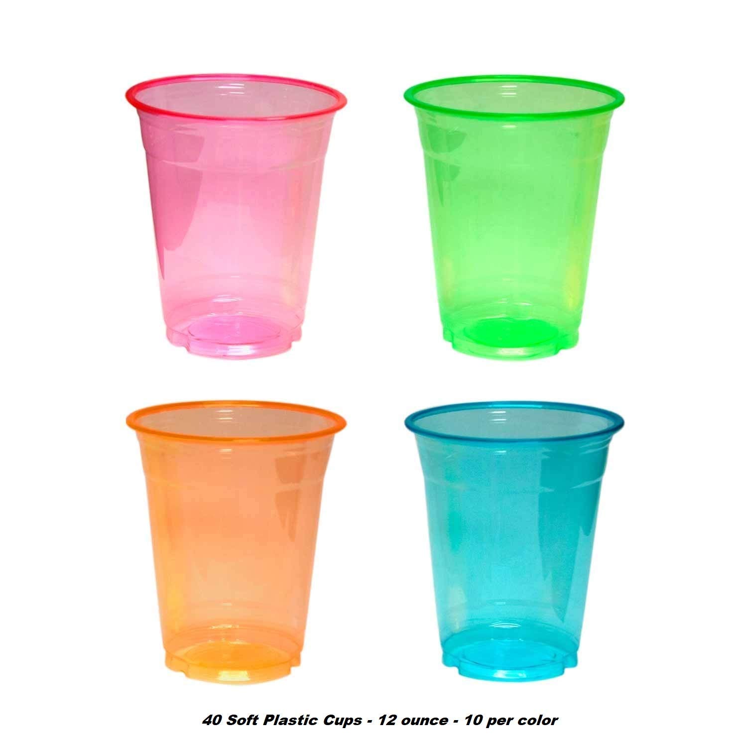 Amazon Com 12oz Neon Assorted Blacklight Reactive Soft Plastic Cups With Free Blacklight Balloons 40 Health Personal Care - Black light glow in the dark party tip #2.