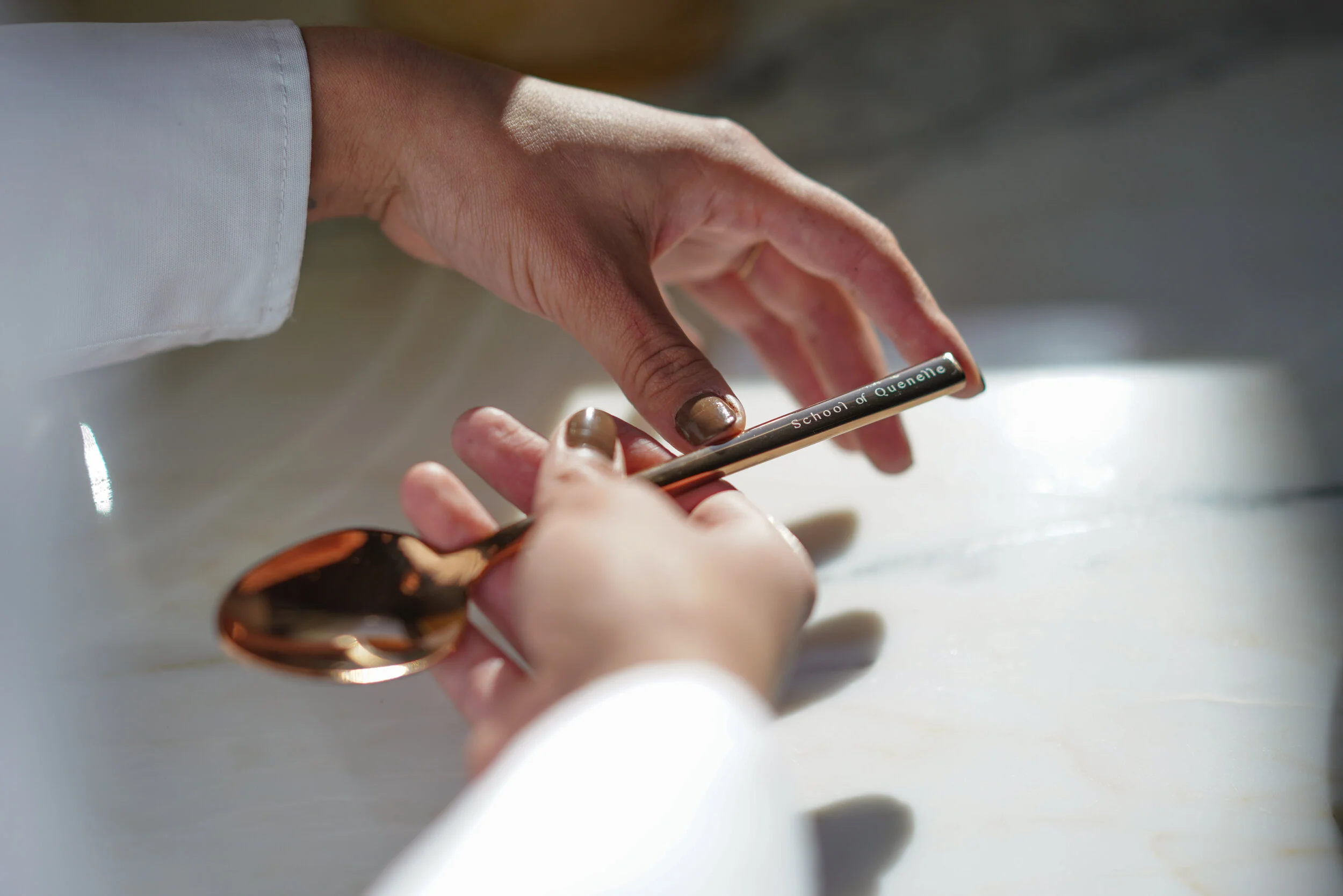 Quenelle Spoon Set Quenelle Spoon Set - Rocher, pastry chef deep bowl spoon , baking, one handed quenelle spoon.