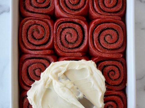 Red Velvet Cinnamon Rolls No Yeast Red Velvet Cinnamon Rolls No Yeast : Beat until light and fluffy, about 2 minutes.